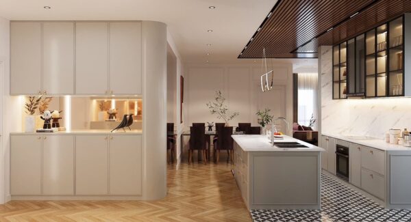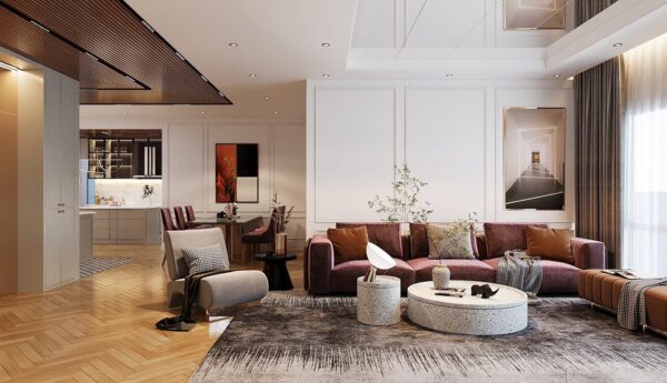 Sảnh đón lớn – Phòng khách – Bếp kín – Phòng ăn – 2 phòng ngủ