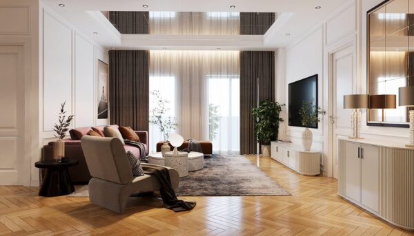- Bố trí kim loại – kính – ánh sáng hợp lý để kích hoạt năng lượng Kim mạnh mẽ, lan tỏa sinh khí toàn nhà
